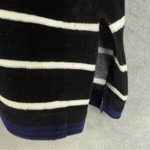 T by Talbots 2X Velour Tunic Top Navy Black White Stripe 3/4 Sleeve