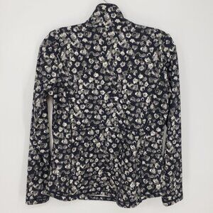 T by Talbots Abstract Print Quarter Zip Long Sleeve Active Top XS Black Gray