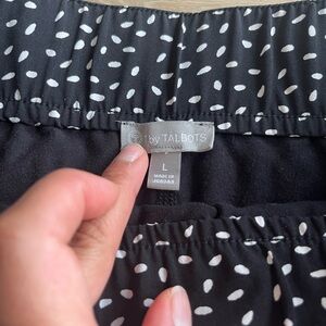T by Talbots Black/White Polka Dot Pull On Elastic Waistband Pockets Skort SZ L