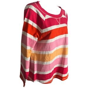 T by Talbots Bright red pink yellow stripe pullover long sleeve Med Petite NWT