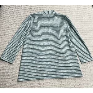 T by Talbots Cardigan Open Front Womens XS Blue White Stripe Long Sleeve Pockets