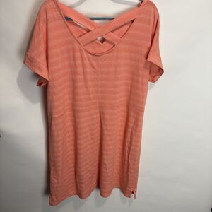 T by Talbots Casual Pullover Dress Orange Stripe Stretch UPF 50+ Cross Back 1X