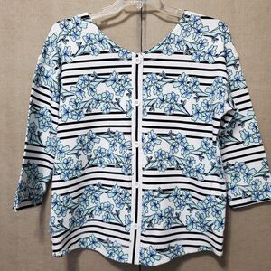 T by Talbots Cotton Blend Striped Floral 3/4 Sleeve Sweatshirt Size Large