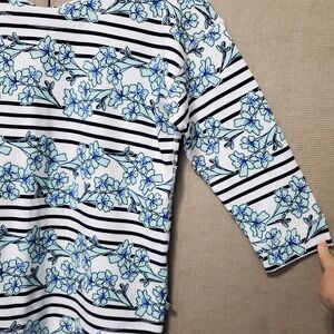 This is a T by Talbots Cotton Blend Striped Floral 3/4 Sleeve Sweatshirt Size Large