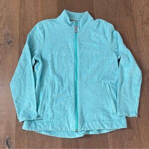 T by Talbots Cozy Crush Terry Mockneck Full Zip Women's Jacket Solid Blue(SizeL)