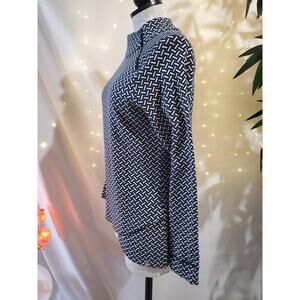 T by Talbots Geometric Navy Blue White Asymmetrical Zip Mock Neck Top Womens XS