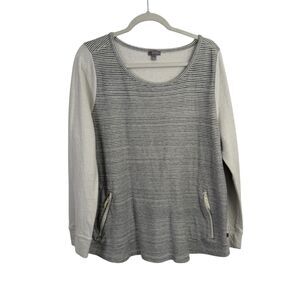 T by Talbots Grey Striped Sweatshirt Pockets Capsole Minimalist Office Womens 2x