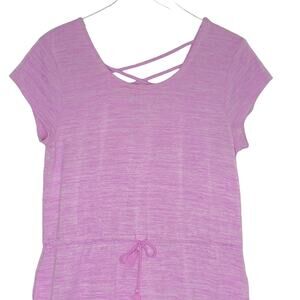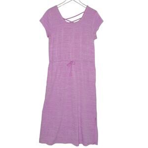 T by Talbots L Petite Pink Tassel Tie Soft Jersey Maxi Dress Short Sleeve