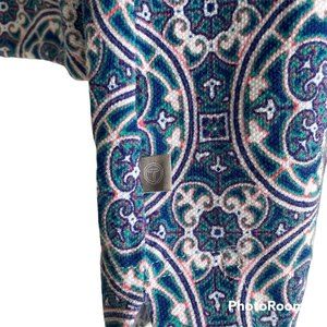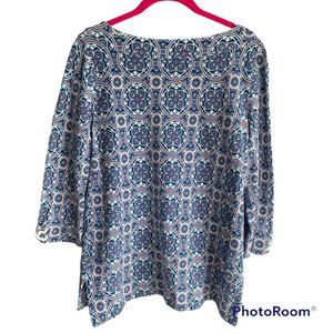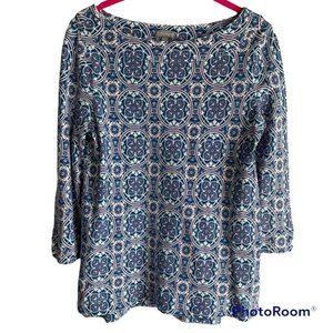 T by Talbots Ladies Multicolor Medallion Boatneck 3/4 Length Casual Tee, S