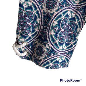 T by Talbots Multicolor Medallion Boatneck 3/4 Length Casual Tee. Has a nautical feel. Rope embellishment on sleeve hem.