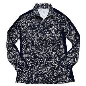 Navy Blue, White, Geometric Abstract Swirl Paisley Polka Dot Print