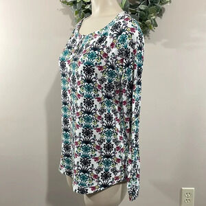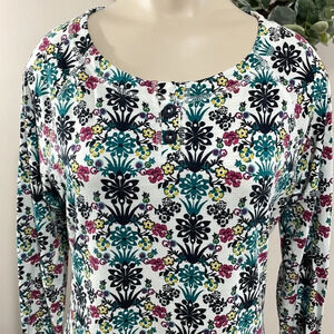 T by Talbots Long Sleeve Raglan Two Button Floral Knit Top MP