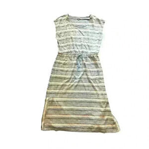 T by Talbots Midi Dress Size MP Drawstring Waist Blue Stripes Knit Stretch