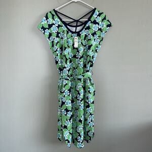T by Talbots Open Back Short Sleeve Dress Woman’s Size PS Petite Floral Fields