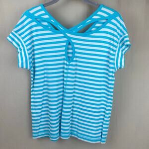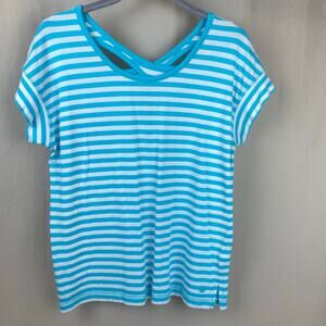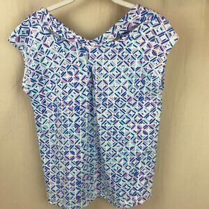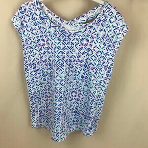 T by Talbots Petite Small Crisscross Geometric Striped Cotton Spandex Cap Sleeve
