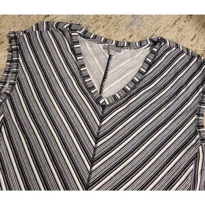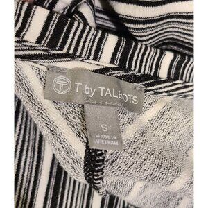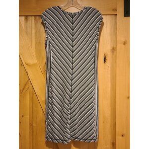 T by Talbots Size M Black & White Striped V Neck Shift Dress Pockets Artsy Rayon