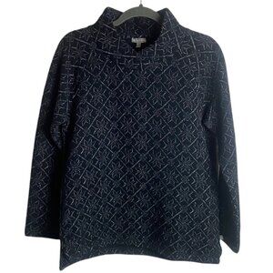 T by Talbots Size Small Snowflake Quilted Wrap Neck Pullover Sweatshirt Black