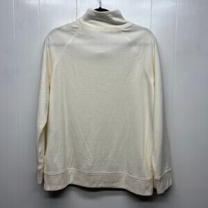 T by Talbots women's pullover sweatshirt in cream. Mock neck. Long raglan sleeves. Side slits. Very soft and cozy. In good used condition. No stains, tears or holes.