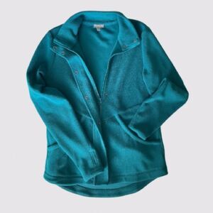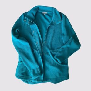 Stay cozy and stylish with this teal fleece jacket. Perfect for layering in cooler weather.