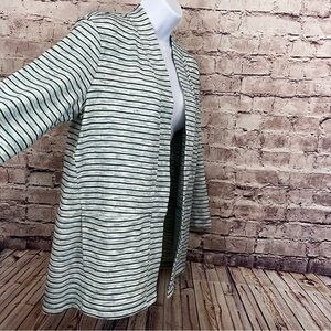 T by Talbots Teal Stripe Long Sleeve Open Cardigan