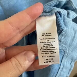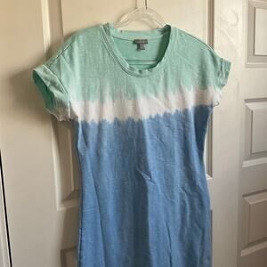 T by Talbots terry cloth tie dye t-shirt dress. Knee length. Pretty blue, mint green and white colors. This does not have pockets.