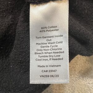 This T by Talbots sweatshirt is perfect for any casual or activewear occasion. The pullover style features a mock neck and long sleeves, making it suitable for walking or school activities. The sweatshirt is made of a comfortable fleece fabric that is a blend of polyester and cotton. It is easy to care for and can be machine washed. The black color and solid pattern give it a classic and preppy look, while the modern design elements make it suitable for any outdoor theme. The sweatshirt is available in size L and has a regular fit.