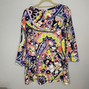 T by Talbots UPF 50 Pique Tunic Size 3X Daisy Print Bright Retro Stretch Cotton
