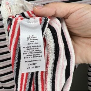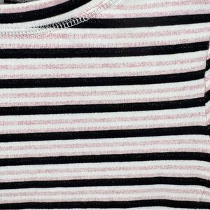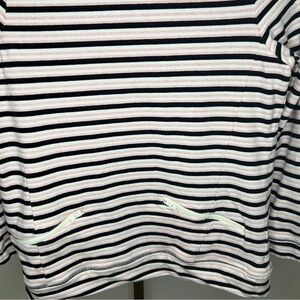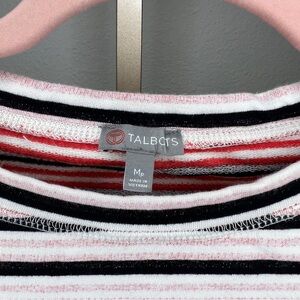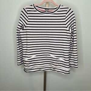 T by Talbots White, Pink, Black Stripe Crew Neck Long Sleeve Pocket Top Size MP