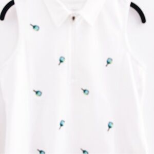 Elegant white sleeveless polo from T by Talbots. Features unique pickleball paddle embroidered details.