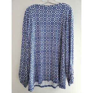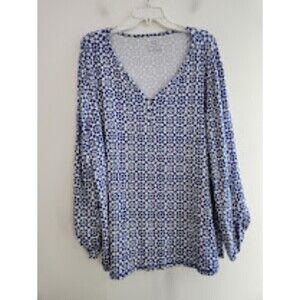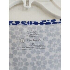 T by Talbots Women Blue & White Jersey Knit V-Neck UPF 50+ Prtotection Top size 3X, great condition