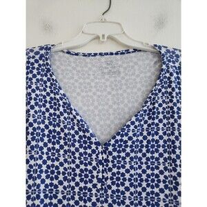T by Talbots Women Blue & White Jersey Knit V-Neck UPF 50+ Prtotection Top sz 3X