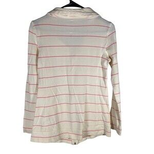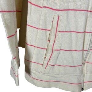 T by Talbots Women Jacket Size XS Long Sleeve Full Zip Stripped Casual Outdoor Size XS Multicolor Pink and Cream Stripped Knit Full Zip Up Pockets Long Sleeve