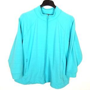 T by Talbots Women Plus Cozy Crush Turquoise Full Zip UPF Jacket Sz 3X Petite