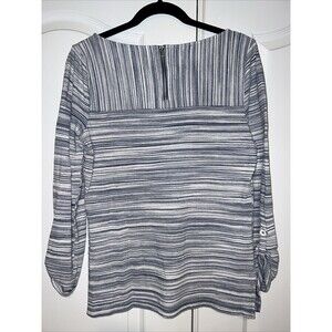 T by Talbots Women Top Med Gray Zip 3/4 Sleeve Striped Knit Pocket Stretch Light