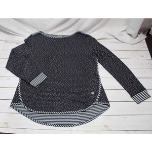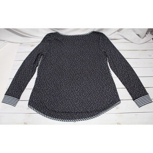 T by Talbots Women's (L) Blue Dots Striped Tunic Top Long Sleeve Boat Neck