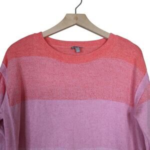 T by Talbots Womens L Striped Pink Orange Pima Cotton Sweater