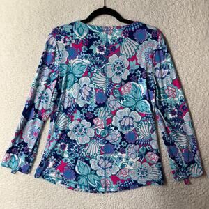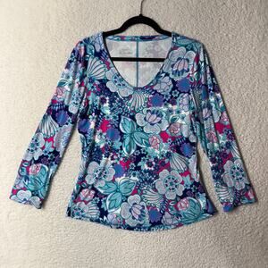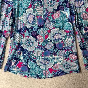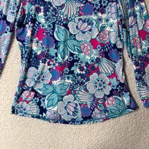 T by Talbots Womens Size M Roll Tab Top Bamboo Floral Colorful UPF Protection