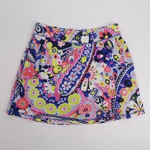 T by Talbots Women's Skort Small Petite Blue Pink Yellow Bright Colorful Paisley Print Front Pockets UPF30. Summer, Beach Golf Tennis Athletic. Great condition, no flaws. Smoke free home.