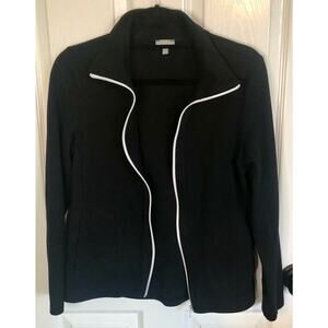 T by Talbots Women's Small Black Zip-Up Jacket White Details Lightweight Pockets