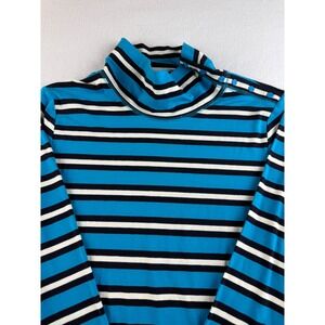 T by Talbots Womens Striped Button Shoulder Mock Neck Top Turquoise Small