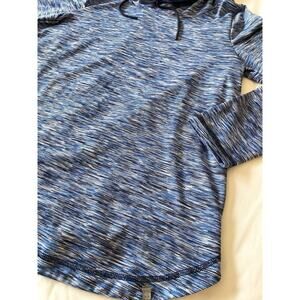 T by Talbots Women’s Sweater Blue White Black Striped Cowl Neck Pullover Size M