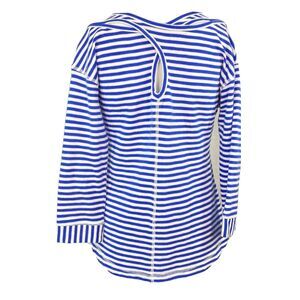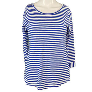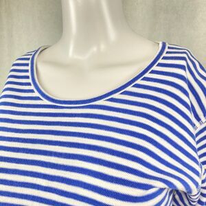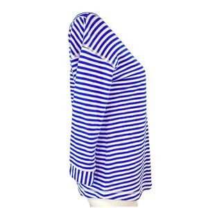 T by Talbots Womens Sz SP Petite Blue White Striped Cotton Knit Keyhole Rear Top
