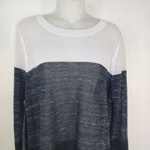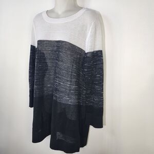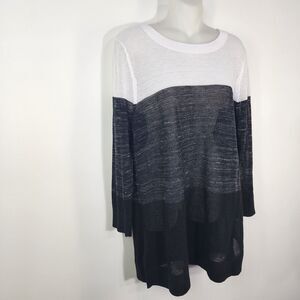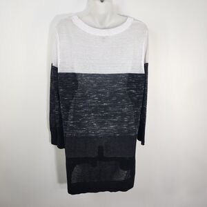 T by Talbots Womens Tunic Sweater Large Black Gray White Color Block Open Knit