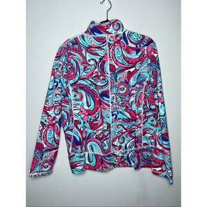 T by Talbots full-zip activewear jacket in a pink and blue paisley or swirl design print size XL. Brand new with tags.