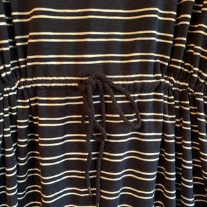 Great maxi with tie front, roomy pockets, soft soft material. Roomy sleeves. Side slit at bottom .cotton nylon spandex