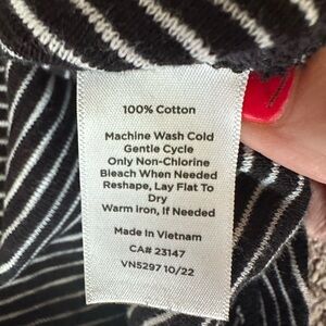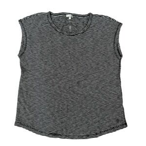 T by Talbots ruched back sleeveless 100% cotton striped tee top black white XL