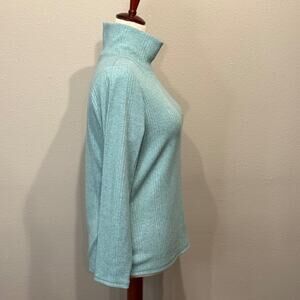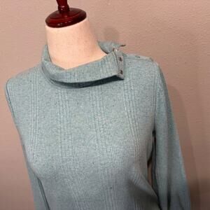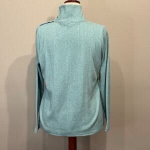 T by Talbots top light blue multi color heathered snap mock neck ribbed Sz L
