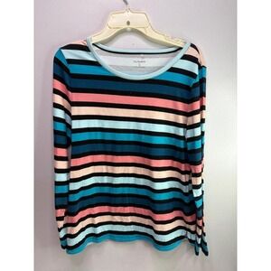 T by Talbots women's striped long-sleeve oversized tee size small in good preowned condition having any questions feel free to ask.