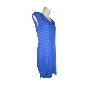T by talbots blue striped bathing suit coverup dress rushed sides