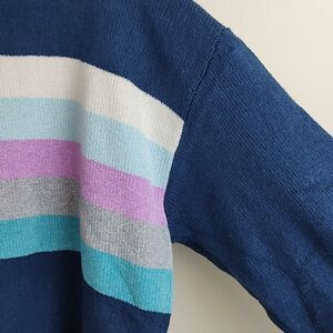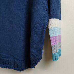 T by Talbot's Tweed Chenille Stripe Tunic Sweater in Dark Slate. Cozy pullover sweater with soft chenille stripes and a curved ribbed hem. 54% cotton, 23% nylon, 15% acrylic and 8% wool. Size XL Petite.